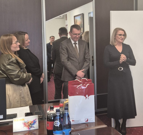 Wyjątkową okazją do złożenia wizyty była zmiana na stanowisku Dyrektora Delegatury. Po 31 latach kierowania łomżyńską Delegaturą, Dyrektor Jerzy Antoni Dołęgowski przekazał obowiązki swojej następczyni – Anecie Ostatkiewicz, wieloletniej pracownicy Delegatury, która wygrała konkurs na to stanowisko.